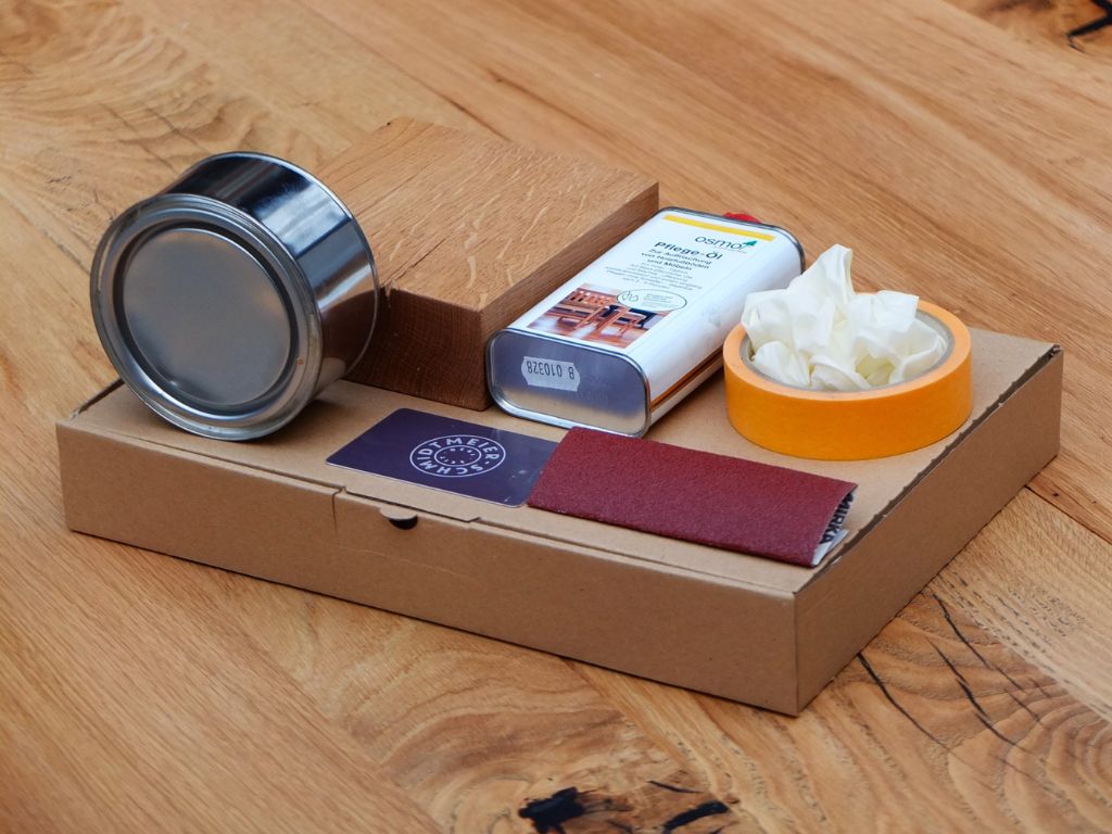 Mit einem passenden Pflegeöl und feinem Schleifpapier lassen sich viele Gebrauchsspuren sehr gut zu Hause ausgleichen. Bei tieferen Kratzern oder kleinen Dellen gibt es ebenfalls Lösungen: Dellen lassen sich oft mit etwas Wasser und Wärme wieder aufrichten, stärkere Kratzer können bei Bedarf mit passendem Holzkitt geschlossen und anschließend erneut geölt werden.